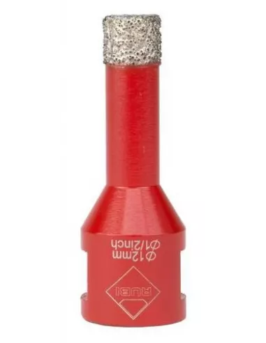 Descubre la Broca Diamante Porcelánico Drygres de RUBI, la herramienta esencial para tus proyectos de reforma. Diseñada para taladrar en seco en cerámicas de revestimiento, gres y gres porcelánico, esta broca te ofrece un rendimiento excepcional con una velocidad de trabajo máxima de 14.000 r.p.m. Su acabado en rosca M14 permite una conexión directa a amoladoras o el uso con taladros eléctricos sin percutor (requiere adaptador ref. 05976). Perfecta para facilitar tus tareas de bricolaje, cada broca viene envasada en blister, lo que asegura su protección y calidad. ¡No te quedes sin la herramienta adecuada para tus reformas!