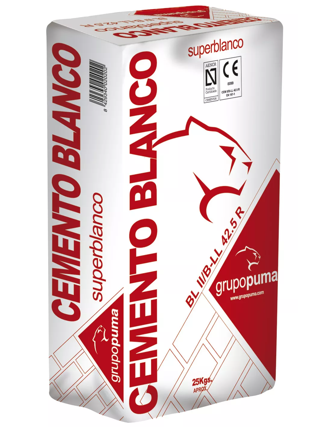 Cemento Blanco 42.5 de 25 kg de Grupo Puma, ideal para hormigones arquitectónicos y acabados estéticos. Garantiza alta resistencia y un resultado impecable en tus proyectos de construcción y reforma.