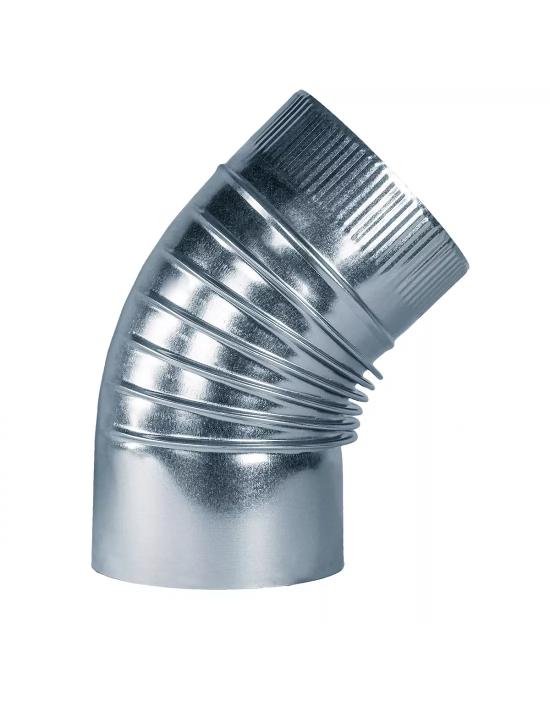 Codo 45 galvanizado de 175 (0.8) rizado. Precio sujeto a cambios según el coste de materia prima. Ideal para instalaciones eficientes.