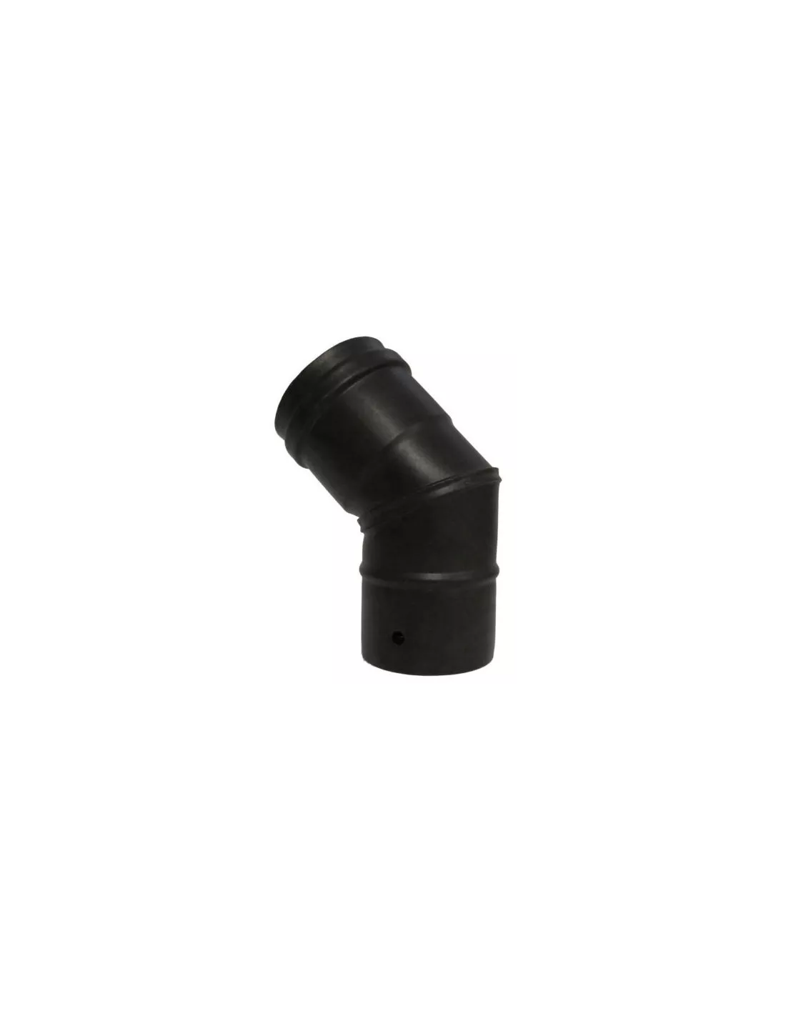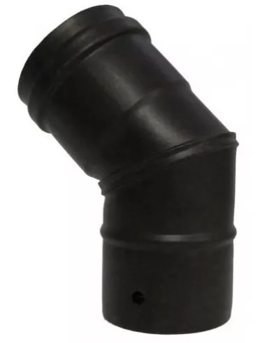 Codo de 45º en acero vitrificado negro de 80 mm, ideal para evacuación de humos en estufas y calderas de pellet. Resistente a 600ºC, con acabado mate que combate la corrosión, certificado por KIWA.