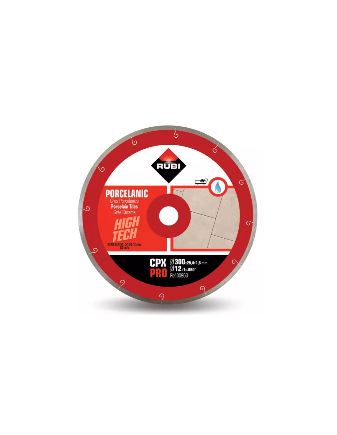 El Disco Diamante Continuo Porcelánico CPX 300 Humedo de RUBI es la herramienta perfecta para los profesionales de la colocación de baldosa cerámica que buscan rendimiento y eficiencia en sus proyectos. Diseñado específicamente para cortes rectos en gres porcelánico, este disco destaca por su alta velocidad y calidad de corte, ideales para trabajos exigentes. Su diseño J-SLOT incrementa la velocidad de corte y reduce las tensiones durante el uso, lo que asegura una ejecución más suave y efectiva. Con un diámetro exterior de 300 mm y un grosor de solo 1,6 mm, está optimizado para el corte fino, aunque no es apto para cortes a inglete. Asegúrate de usarlo con agua para obtener los mejores resultados. Este disco representa la mejor relación entre rendimiento y precio, ofreciendo a los profesionales una herramienta fiable y eficaz en sus proyectos.