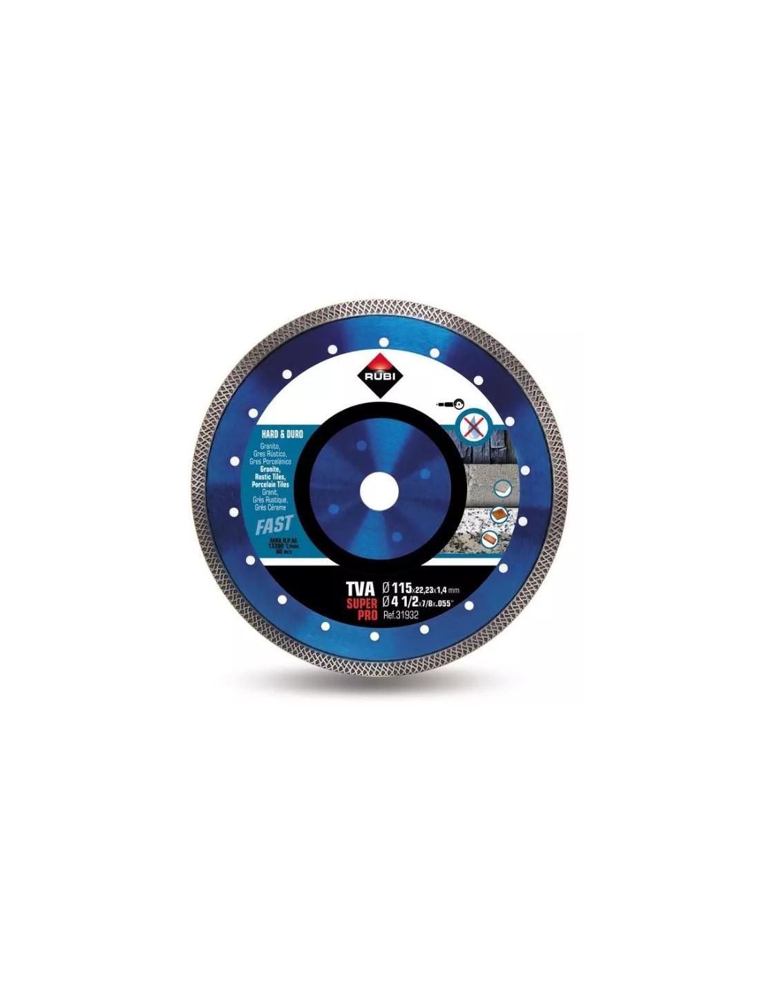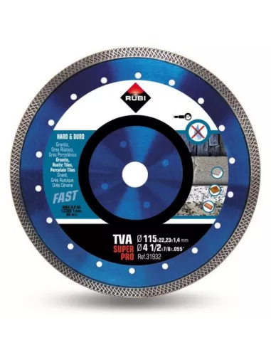 El Disco Diamante Turbo Porcelánico TVA 115 Seco de RUBI es ideal para cortes precisos en materiales duros como granito y gres porcelánico. Su diseño optimizado garantiza alta velocidad y acabado profesional en trabajos exigentes.