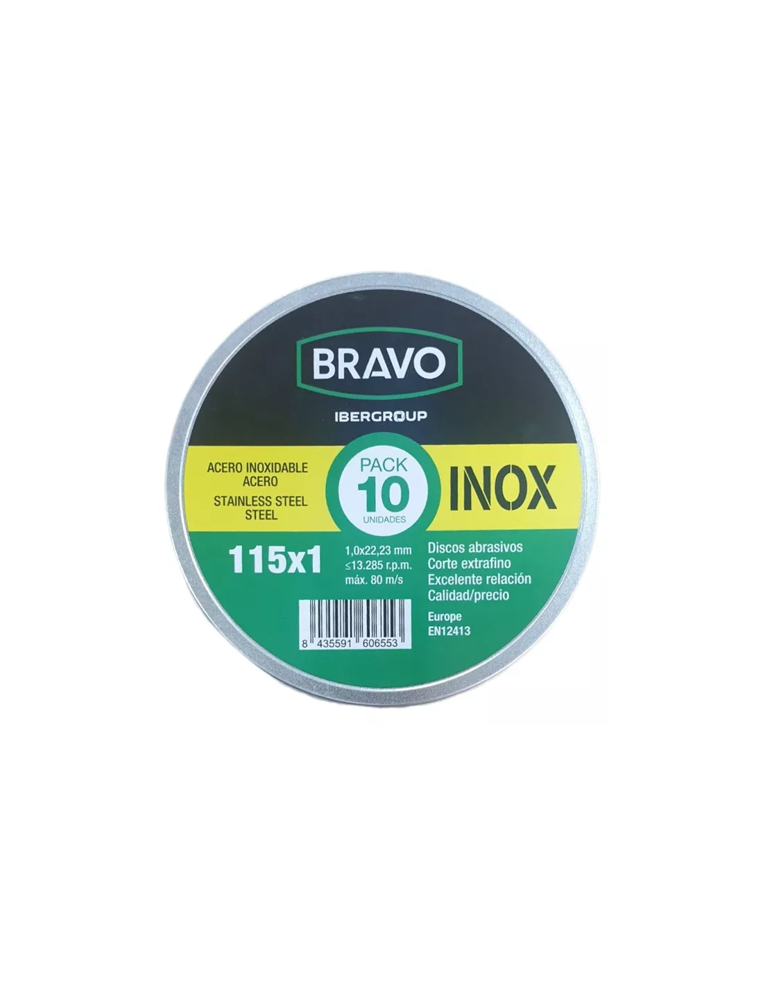El Disco Corte 115x1 Extrafino Inox Bravo, ideal para corte en acero, ofrece precisión y un acabado limpio. Pack de 10 unidades, perfecto para bricolaje y profesionales.
