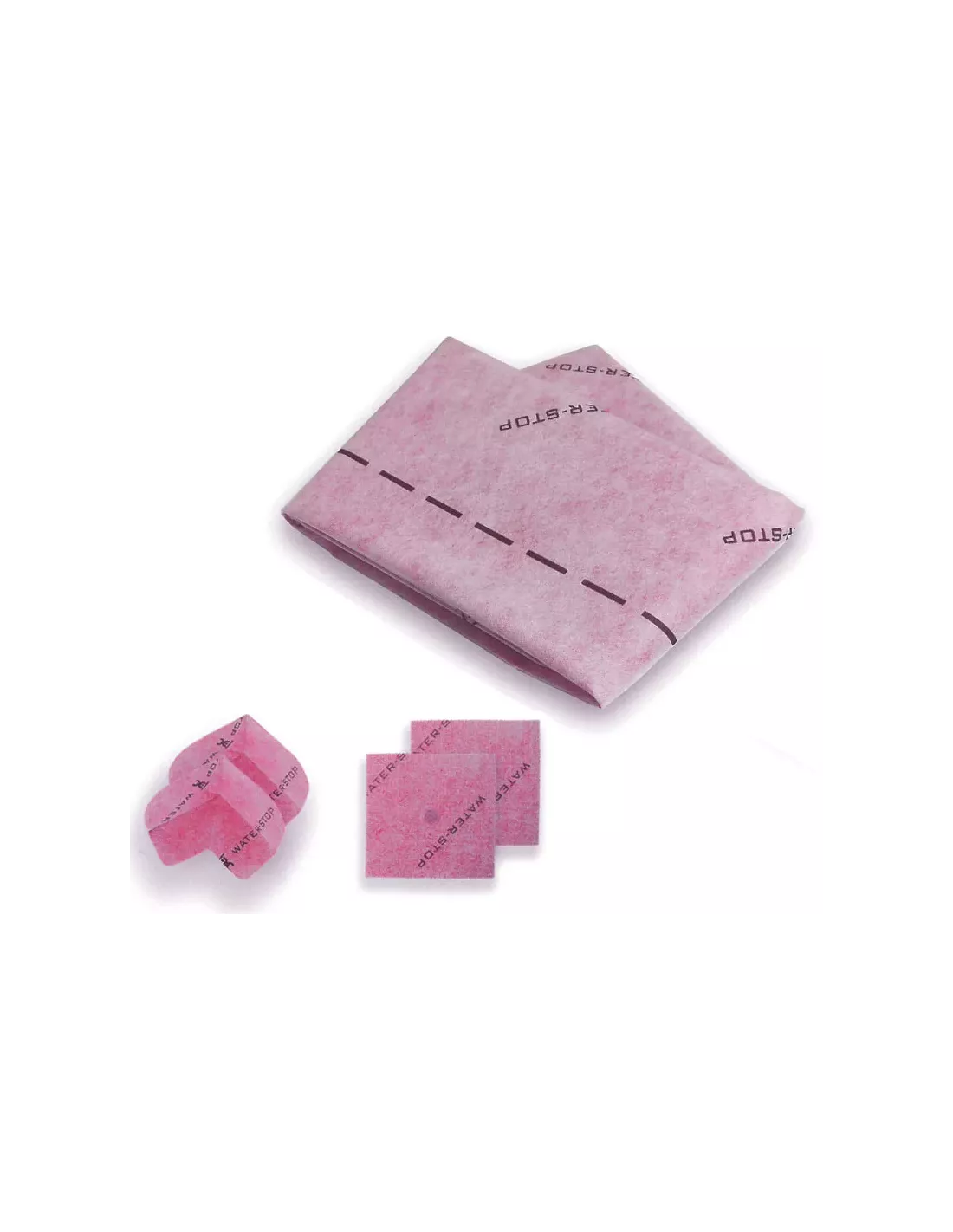 KIT IMPERMEABILIZACION DUCHAS Y DESAGÜES DE OBRA: Equipado con cazoleta inox, lámina WATER-STOP, sifón, filtros y refuerzos para una instalación segura y duradera.