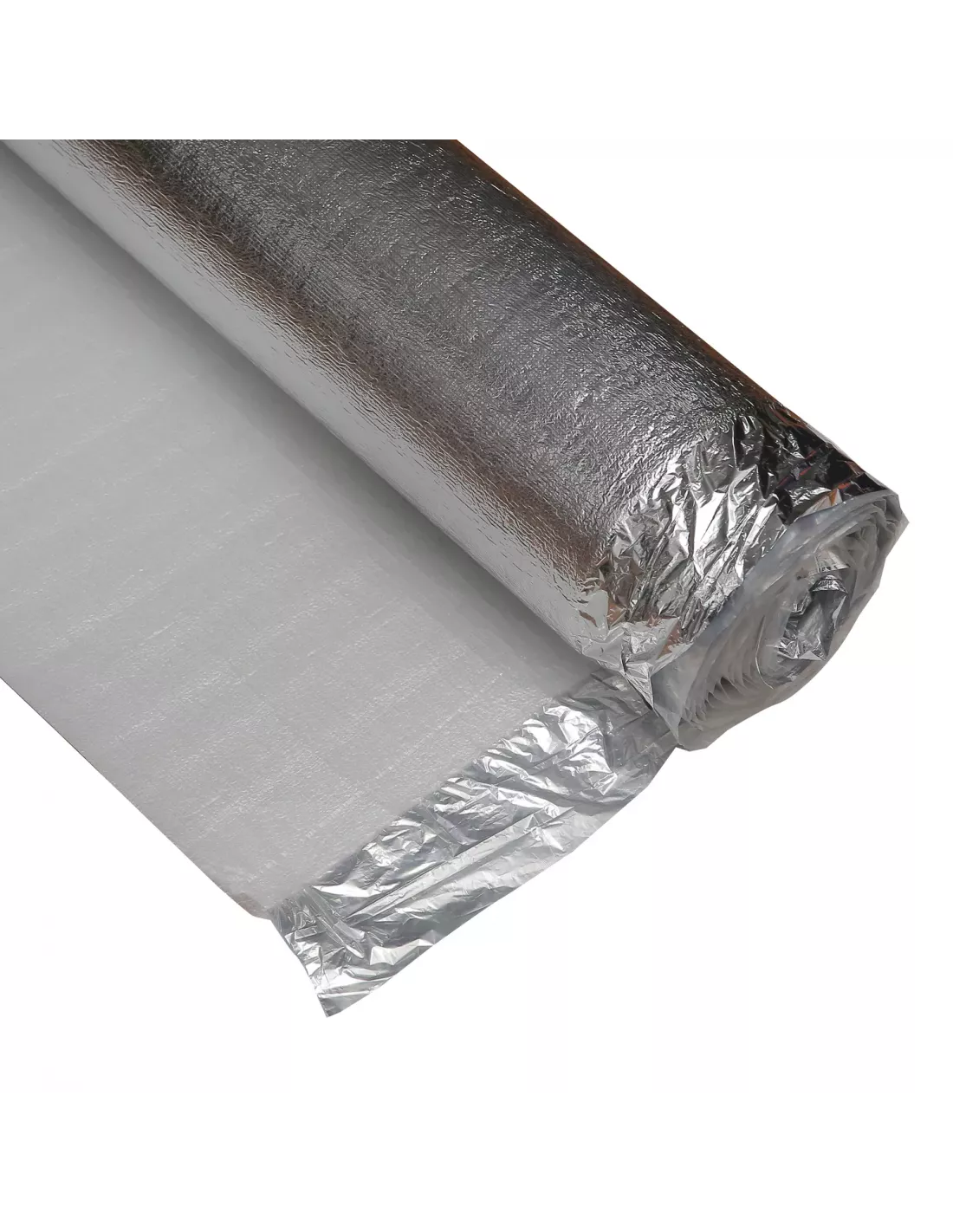 Lámina acústica anti impacto con barrera antihumedad de aluminio. Ideal para suelos con tarima. ¡Consulta logística antes de pedir! Precio hasta fin de existencias.