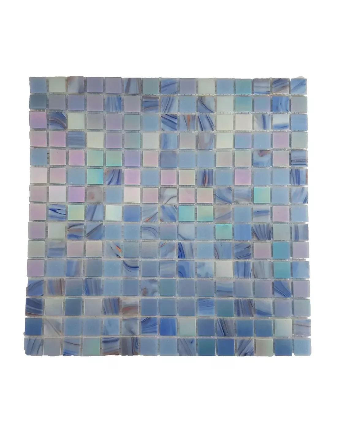 Mosaico vitreo en malla de fibra de vidrio, ideal para baños. Colores violetas, lilas y dorados. ¡Aprovecha la oferta especial hasta fin de stock!