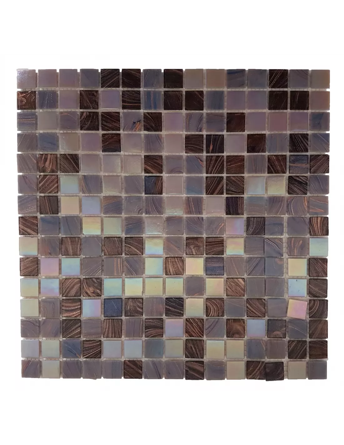 Mosaico vitreo en malla, teselas de 20x20mm en tonos marrones, dorados y negros. Ideal para baños. ¡Oferta especial hasta fin de stock!