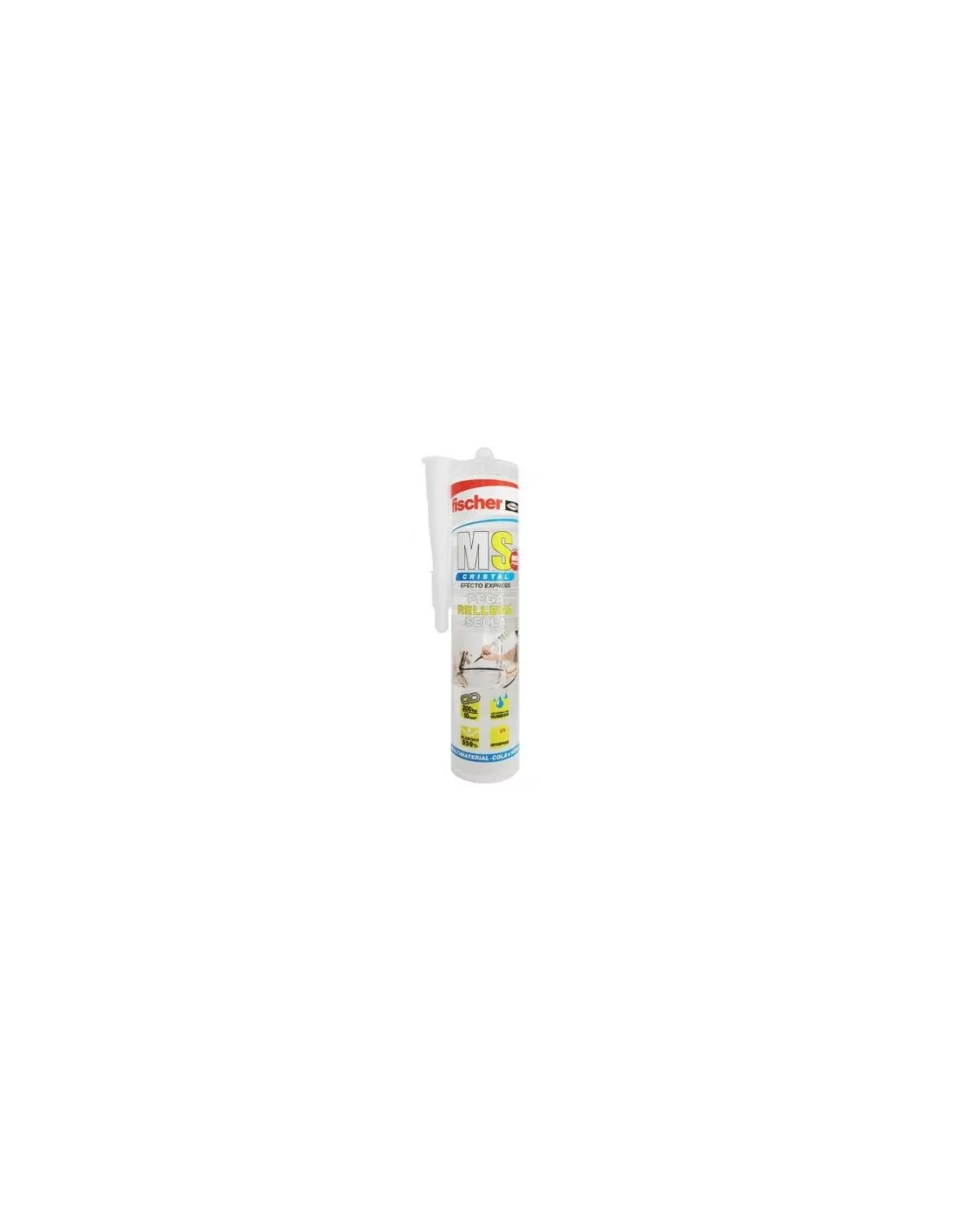 Descubre la Masilla MS Cristal Transparente de 290ml de Fischer, el sellante y adhesivo monocomponente ideal para proyectos de construcción y reparación. Diseñada con tecnología MS, esta masilla ofrece destacadas prestaciones mecánicas, asegurando un sellado y pegado elásticos sobre una amplia variedad de materiales sin necesidad de imprimación.