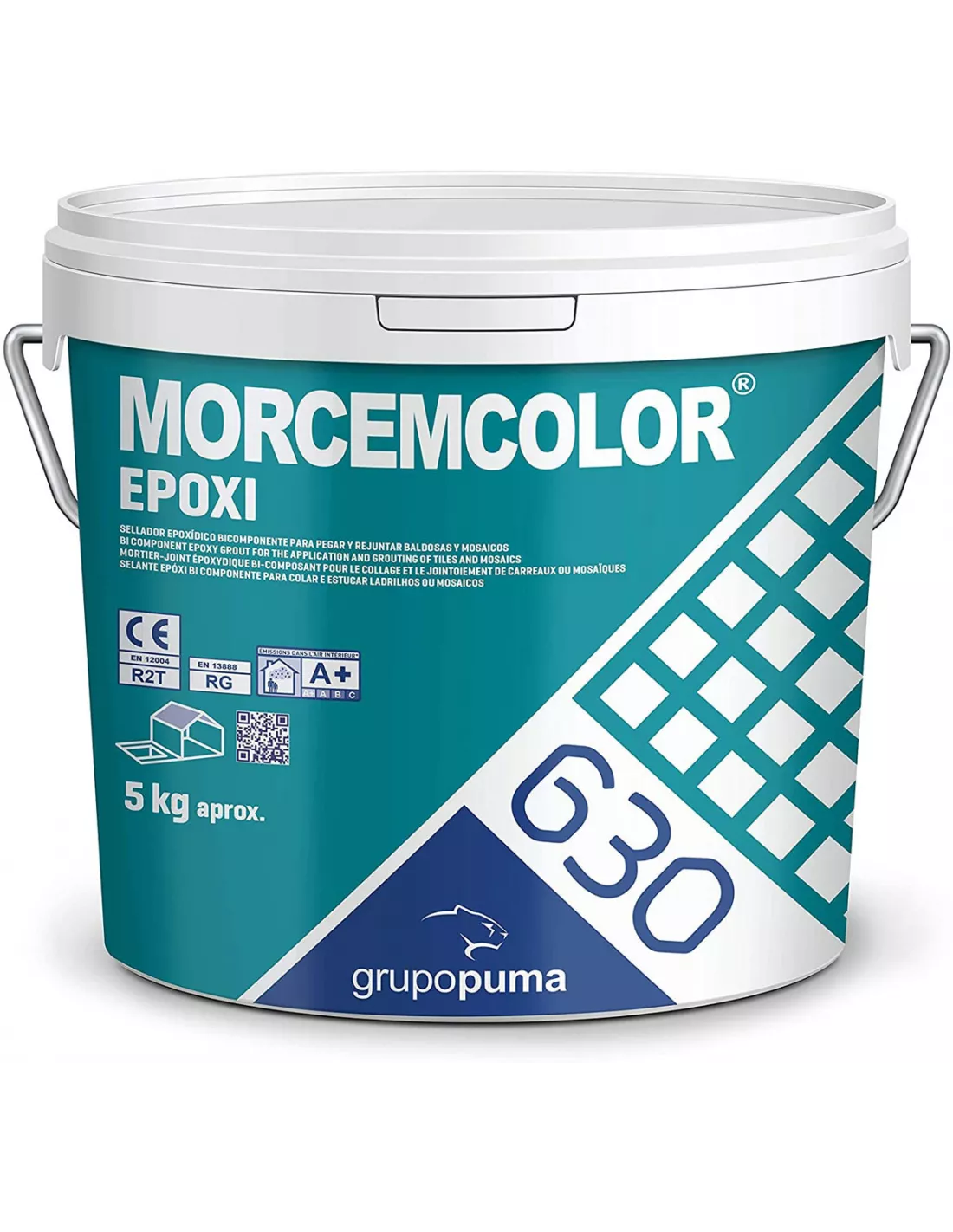 Morcémcolor Epoxi RG Blanco de Grupo Puma es un mortero bicomponente de 5 kg, ideal para la colocación y rejuntado de azulejos cerámicos y mosaicos. Con propiedades antiácidas y bacterioestáticas, ofrece un acabado duradero y profesional para juntas de 1 a 15 mm.