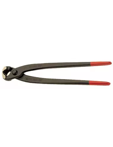 TENAZA RUSA 6001-225: Acabado pintado en negro con mangos rojos. Presenta temple diferenciado en filos, cabeza y mangos para mayor durabilidad.
