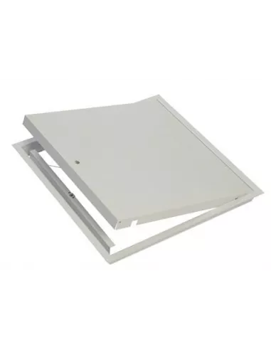 Trampilla Metal Clic Blanca 30x30 de Técnicas Expansivas, S.L INDEX, perfecta para el acceso en contadores y registros. Su elegante diseño en acero galvanizado y cierre 'clic' ofrece durabilidad y facilidad de uso.