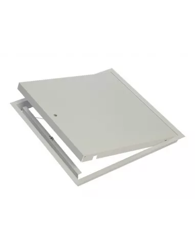 Trampilla de Inspección Metal Clic en blanco lacado RAL 9016, fabricada en acero galvanizado para una durabilidad y estilo moderno. Cierre 'clic', instalación sencilla y compuerta extraíble, ideal para mejorar la accesibilidad en cualquier espacio.
