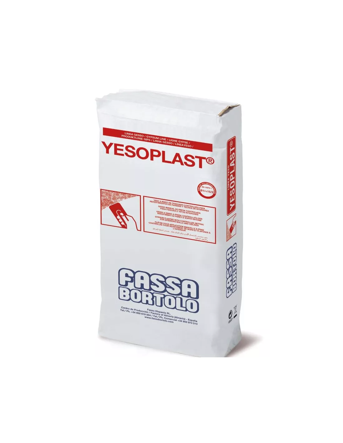 Descubre YESOPLAST, el pegamento ideal para tus proyectos de interior. Este producto de FASSA HISPANIA es perfecto para colocar bloques y placas de yeso, así como para adherir elementos decorativos de yeso en superficies del mismo material. Con su presentación en saco de 15 kg, YESOPLAST garantiza una aplicación sencilla y una sujeción firme, asegurando durabilidad y calidad en cada instalación. Mejora tus espacios con confianza, utilizando un adhesivo confiable y eficiente que hará que tus reformas sean un éxito.